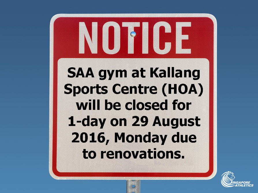 High performance athletes, please seek alternative training gym venue. If you’re training early that day, please do so before 8am and clear the gym by then. We apologize for any inconvenience caused. Enquiries please contact SAA.