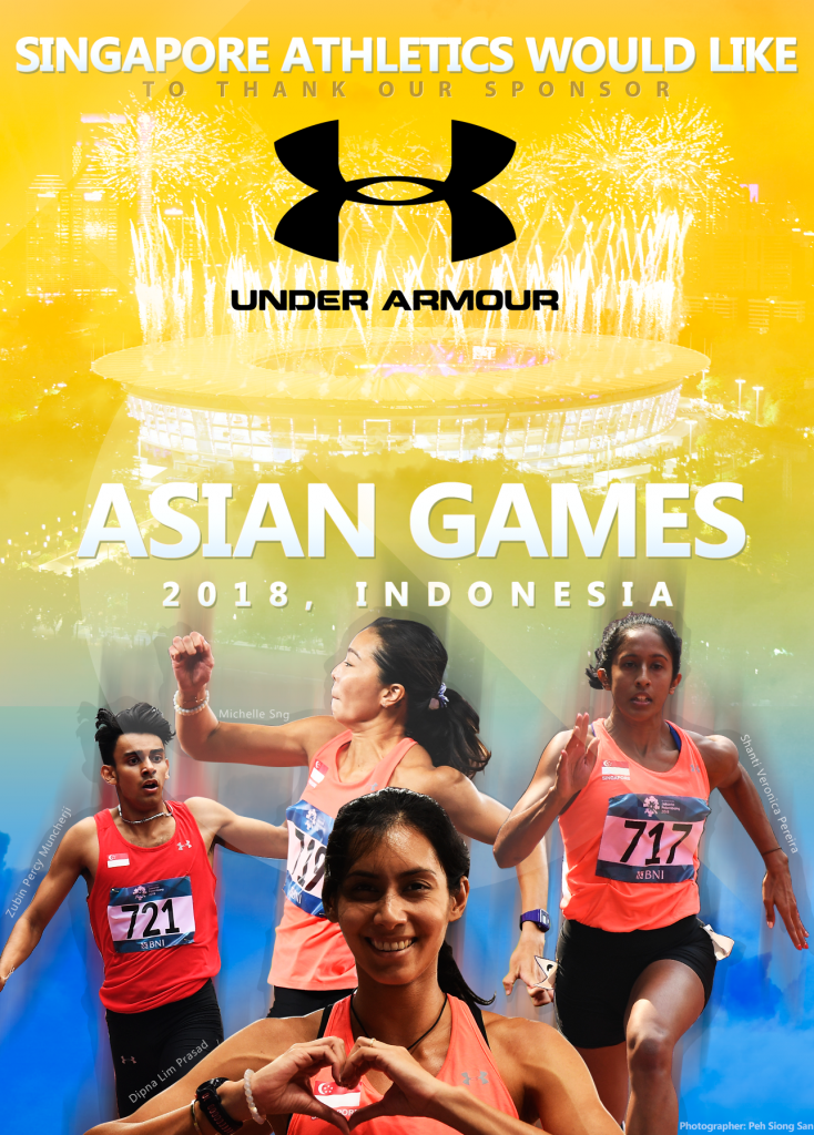 Singapore Athletics would like to thank our sponsor, Under Armour for their kind support during our journey at the Asian Games. Photos below are courtesy of Wan Xin and Peh Siong San.